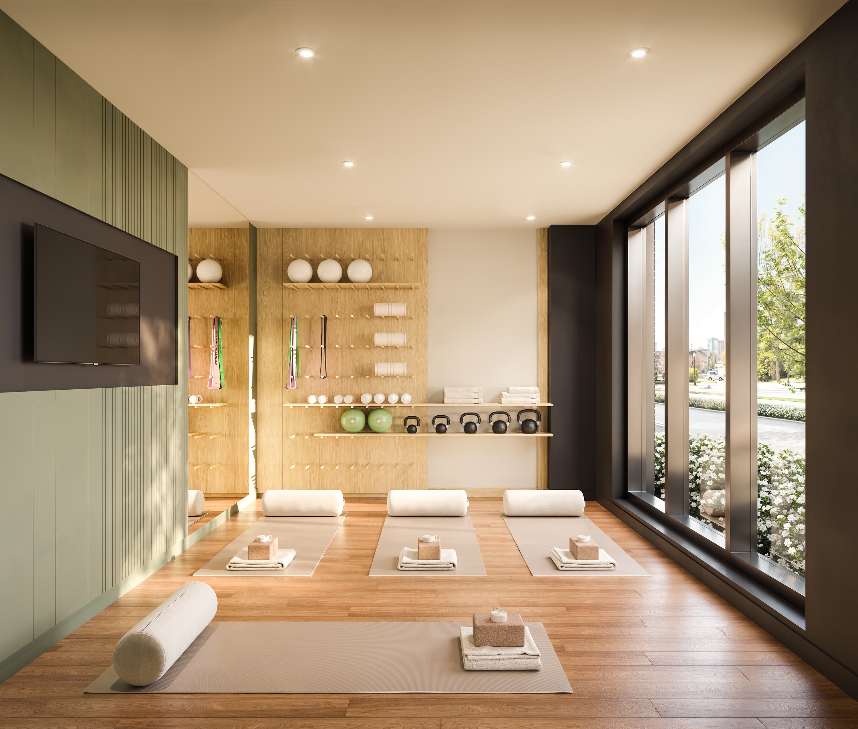 Find your center in a tranquil space dedicated to mindfulness and stretching.