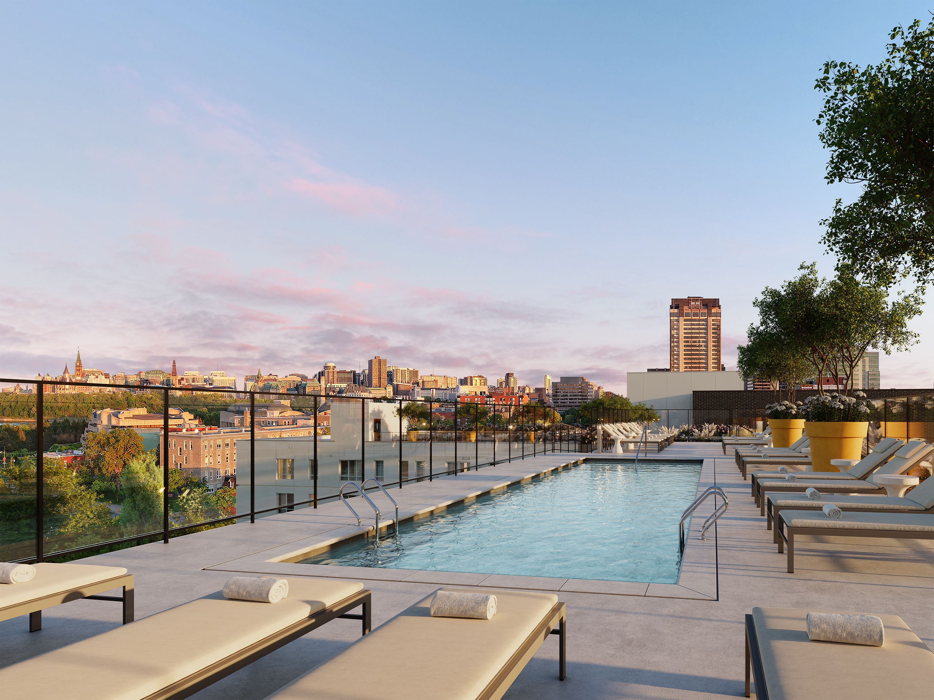 A breathtaking escape with panoramic city views and lounging areas.